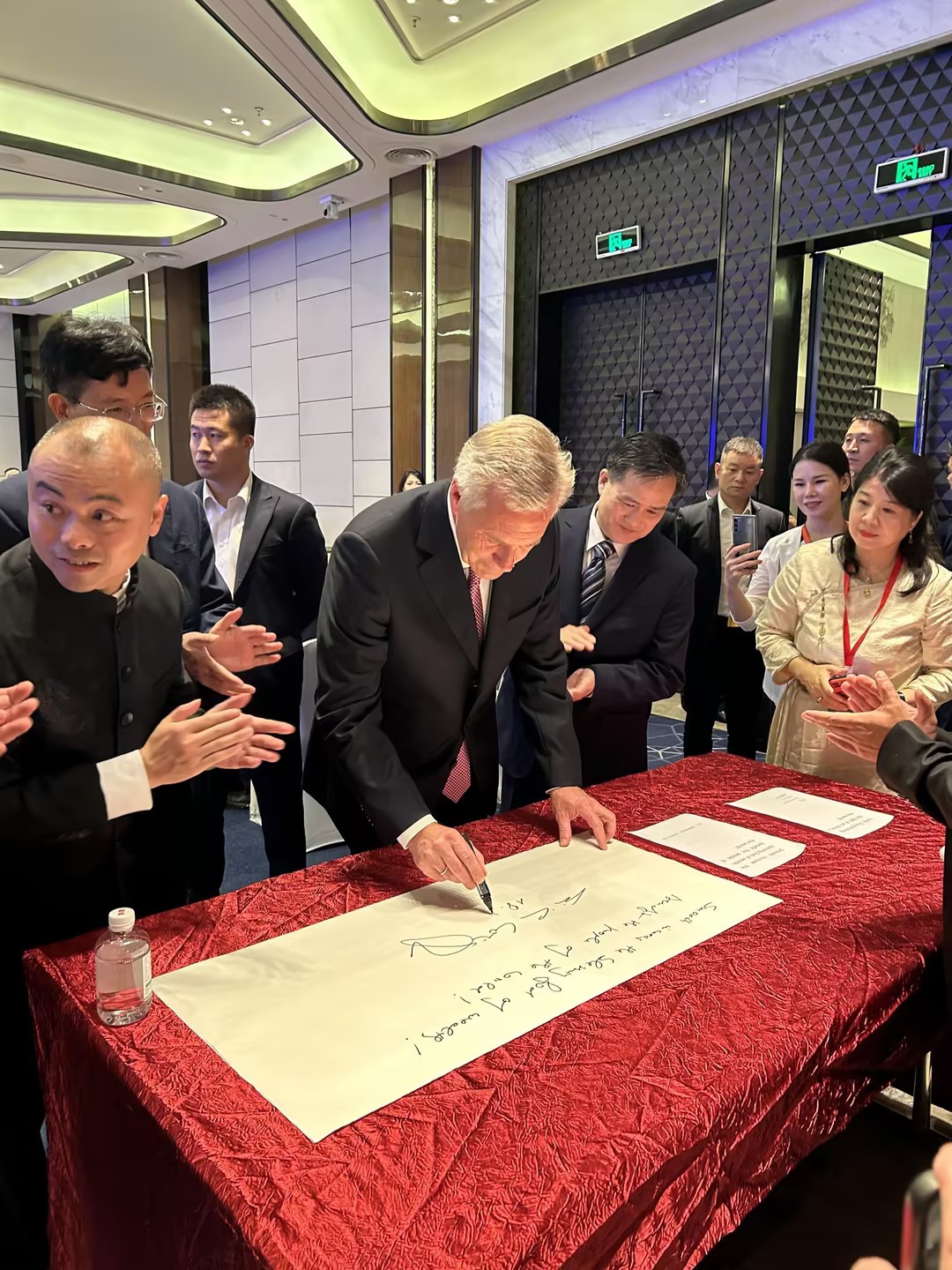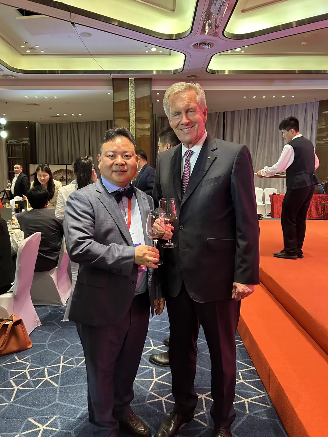 On September 17th, a prestigious event celebrating the 10th anniversary of the "Belt and Road Initiative," hosted by a Chinese company, took place at the JW Marriott Hotel in Bao'an, Shenzhen, China. The event also featured a welcome banquet in honor of former German President Christian Walter Wulff. Mr. Li Yude, co-founder of HOSECOM, was invited to attend this banquet.