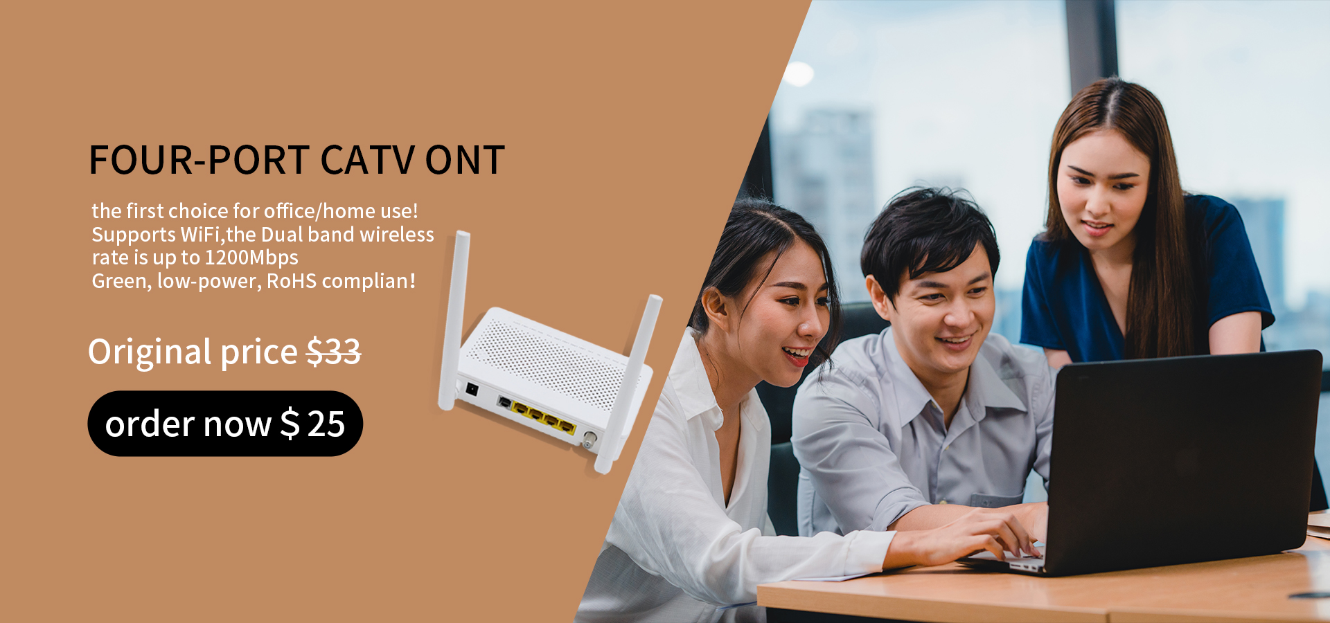 4GE ONU XPon CATV AC1200 WiFi 5 GPon EPon Router FTTH Dual Band Modem
