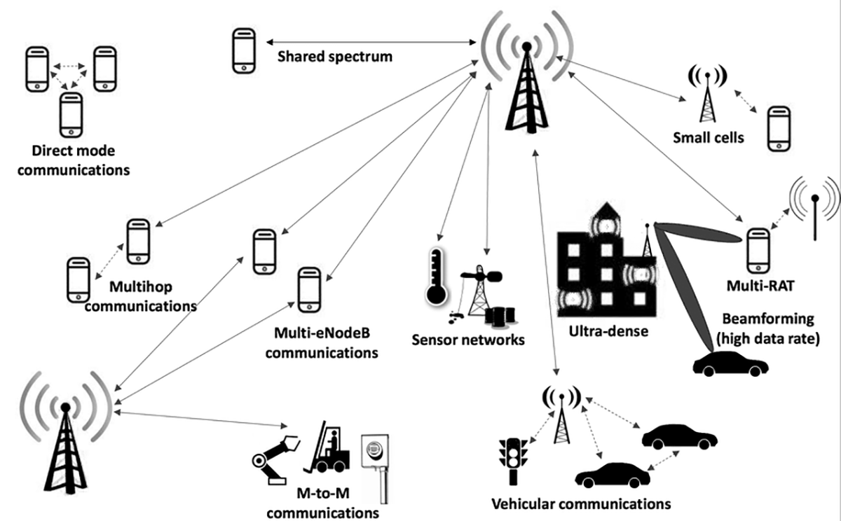 Transmission medium: 5G networks use radio waves as the transmission medium to transmit data over the air. The core technologies of 5G networks include millimeter waves, sub-millimeter waves and bands with higher frequencies.