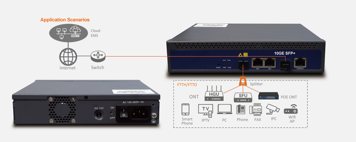 GT0104-ACXD is a box-type GPON OLT with one PON port. The price of GT0104-ACXD is very attractive and the performance is very strong. The splitting ratio of its PON port is 1:128, and the farthest transmission distance is 20KM. Its uplink and downlink bandwidth is as high as: 1.25Gbps/2.5Gbps. GT0104-ACXD can be widely used in FTTH, SOHO, small business office and other application scenarios.