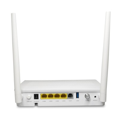 This is a GPon EPon dual-mode adaptive XPon onu modem, it has 4 Ethernet LAN ports, using 1 Gigabit LAN port plus 3 100M LAN ports design scheme, to improve the scope of application of the product as well as to improve the cost-effectiveness of the product, the product has a VoIP interface, USB interface, and at the same time to change the product to provide a 2.4Ghz 300M Wifi link rate, the product has a dual-mode adaptive XPon onu modem. It is a very practical and cost-effective fiber optic network terminal equipment.